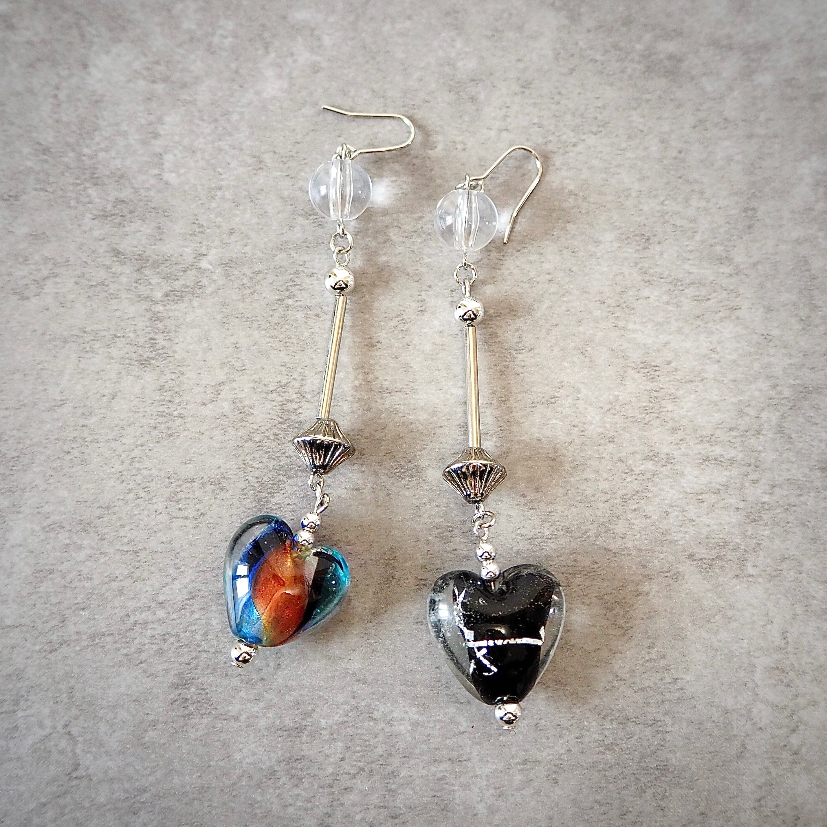 ロイヤルブルーやブラウンをミックスしたハートと、ブラックのアシンメトリーなアイテムです。