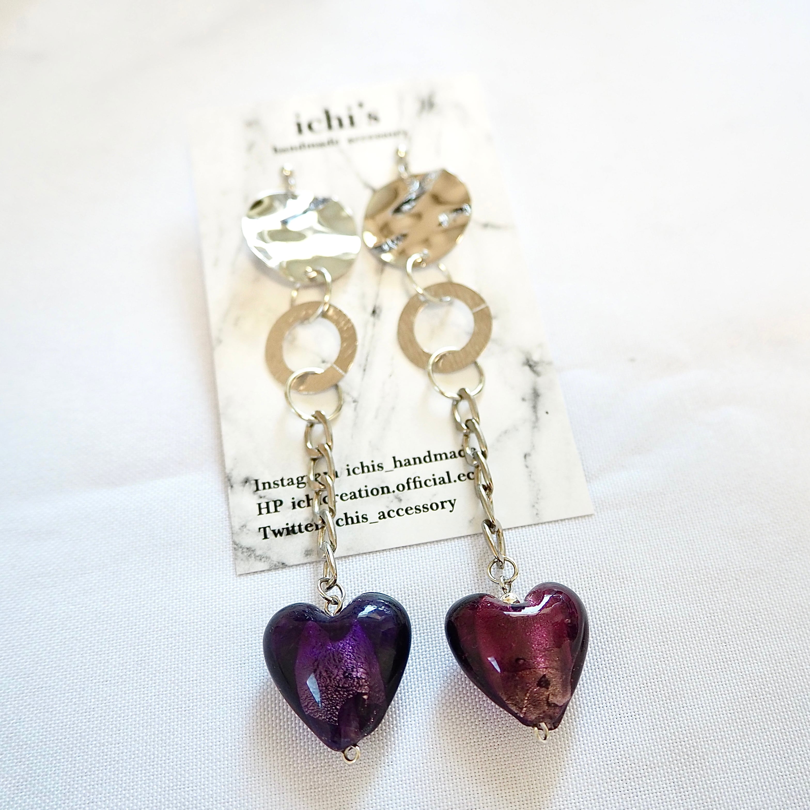 ベネチアンガラス風のハートパーツが可愛いアイテムです。