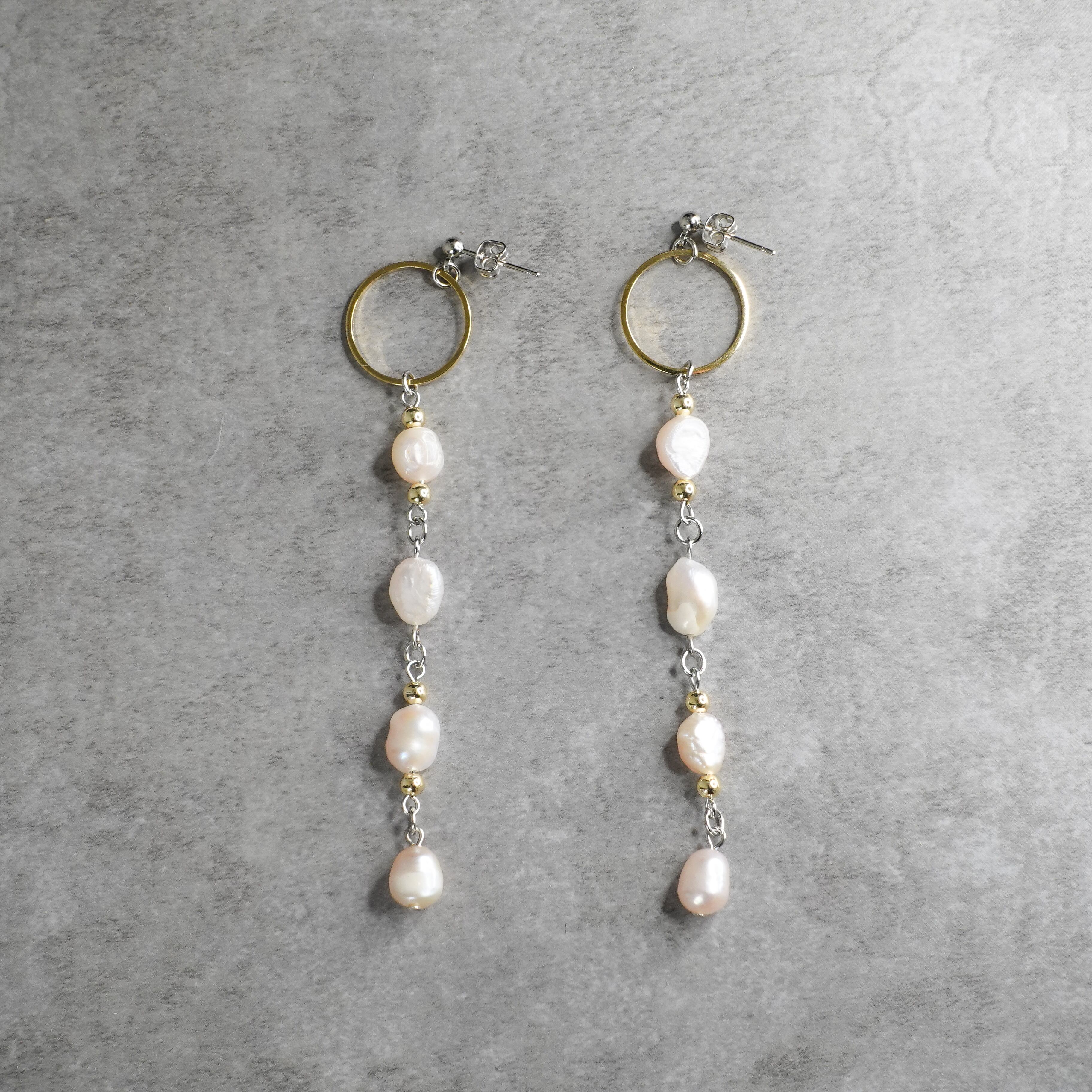 サーモンピンクの天然淡水パールが細かく揺れる上品なアイテム。