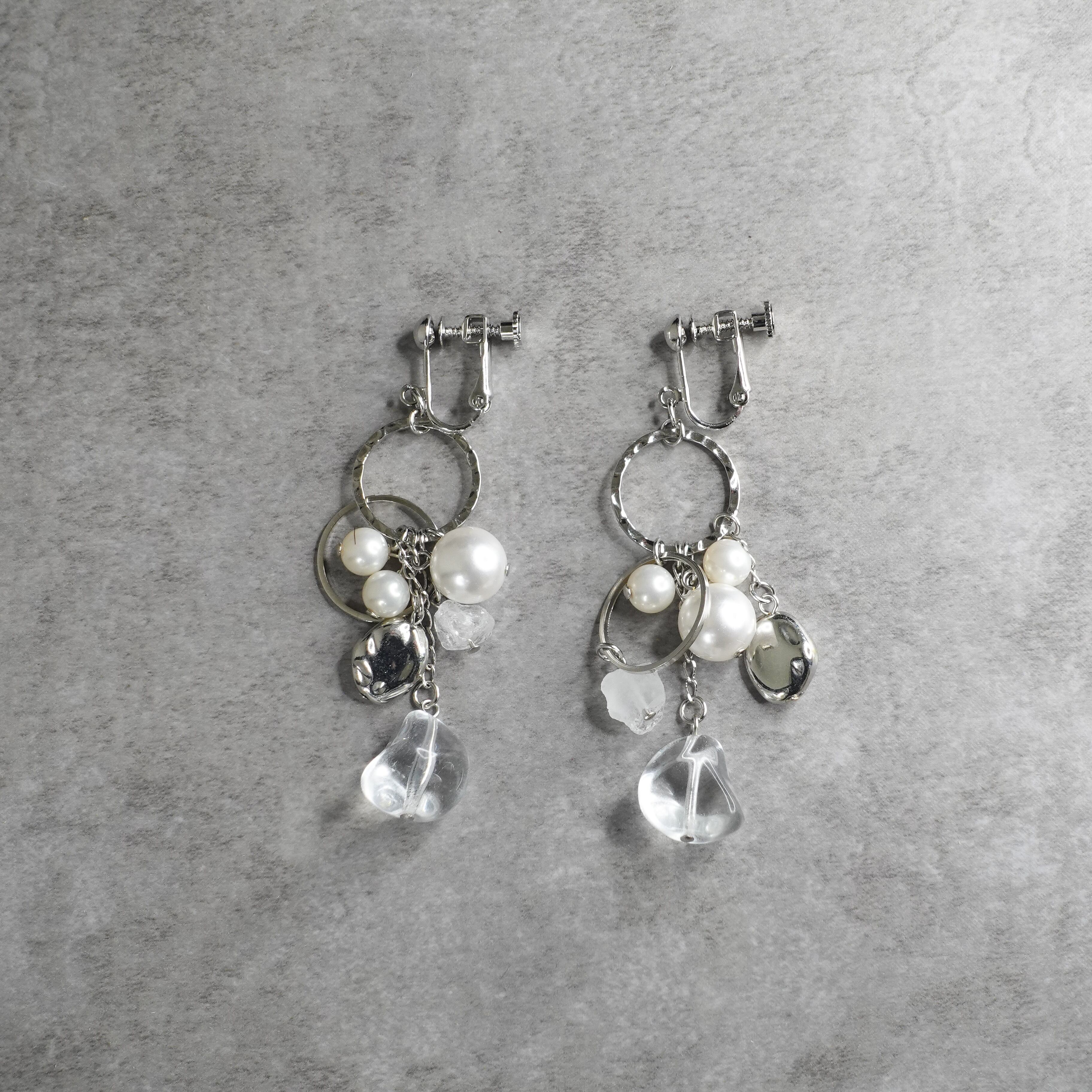 シルバーとクリアカラーのパーツを組み合わせてランダムなボリューム感のあるアイテム。